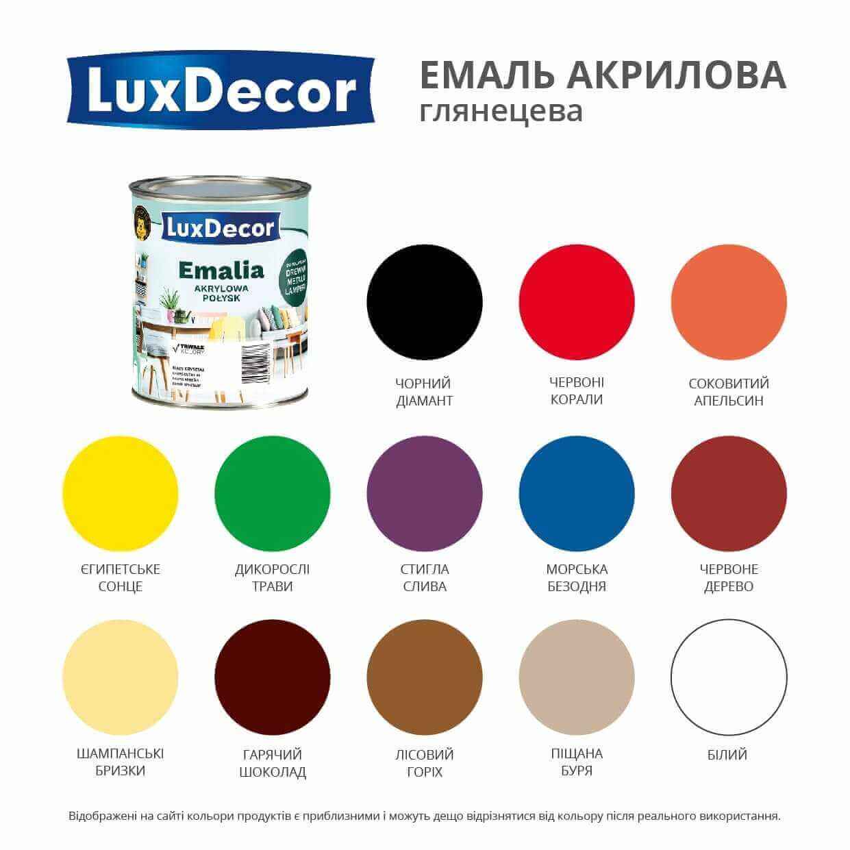 Способ применения: Перед применением краску тщательно перемешать, при необходимости можно растворить краску водой (максимум 5% воды относительно объема фасовки). Избыточное количество воды может существенно ухудшить качество краски и стойкость покрытия. В случае окрашивания поверхности большой площади, рекомендуется использовать краску одной партии производства, или смешать краску разных партий производства между собой в емкости достаточного объема. Образец цветов размещенный на сайте может отличаться от конечного цвета покрытия из-за ограниченных возможностей печати, и не может быть причиной для рекламации. Цвет эмали следует выбирать по образцу который находится у продавца. Акриловую эмаль ЛюксДекор можно наносить с помощью кисточки с мелким ворсом, валика велюрового или поролонового. Следует применять инструмент предназначенный для нанесения продуктов на акриловой основе. Следует нанести 2 слоя покрытия с промежутком в 4 часа, работы выполнять при температуре окружающей среды от + 10˚С до +30 ˚С. После окончания работ следует очистить инструмент и рабочую одежду от остатков эмали в теплой воде. Во время окрашивания и после окончания работы с эмалью следует проветрить помещение до исчезновения специфического запаха.