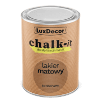 Лак Chalk-it-це безбарвний акрил-поліуретановий лак, призначений для захисту поверхонь, пофарбованих фарбою Chalk-it, а також для захисту не обробленої деревини. Ідеально підходить для меблів, стільниць, вагонки та інших предметів, виготовлених з дерева, що використовуються в приміщенні. Він характеризується простотою використання, хорошою адгезією та витратою. Створює міцне покриття з високою стійкістю до води, спирту та миючих засобів, а також механічних пошкоджень. Не жовтіє з часом.