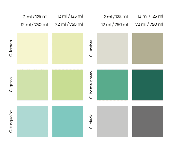 Доступна у різних кольорах та відтінках, які можна висвітлювати (додаючи Chalk-it в кольорі Purewhite, або притемнювати додаючи Chalk-it в кольорі Anthracite), або змішувати різні кольори та відтінки фарби між собою. В такий спосіб можна створити власний унікальний колір.