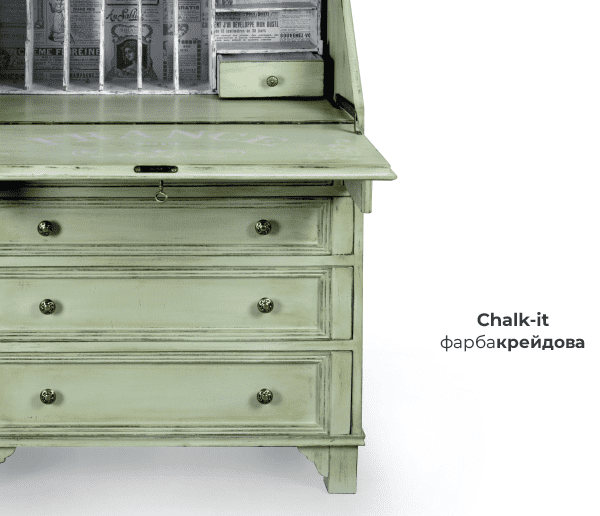Chalk-it–це необмежені можливості декорування. Chalk-it–нове життя твоїх улюблених меблів. Можна пофарбувати меблі в один колір, поєднати кілька кольорів, або створити ефект штучного старіння.